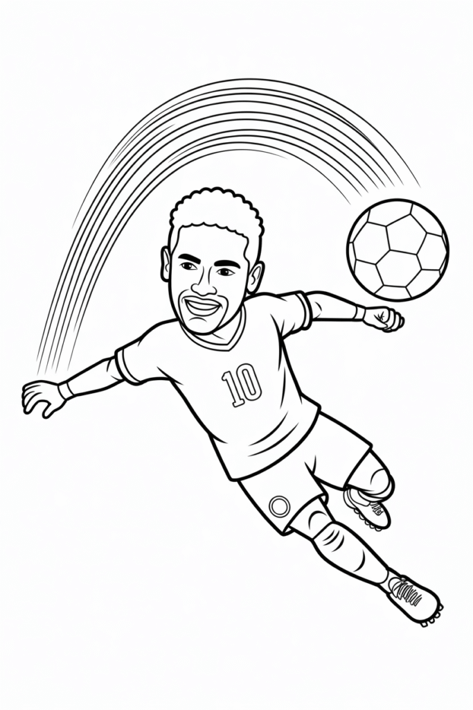 Pages featuring legendary football stars in iconic poses. These designs teach about sporting heroes while offering variety in coloring experiences and connecting fans to their favorite athletes.
